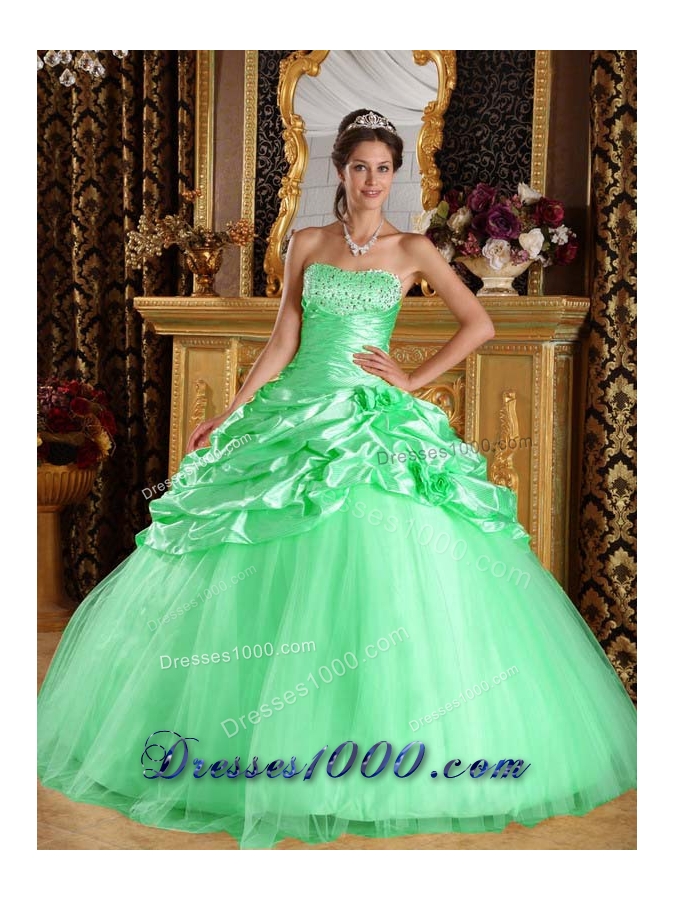 Cute Apple Green Ball Gown with Beading and Hand MadeFlower Quinceanera Dress