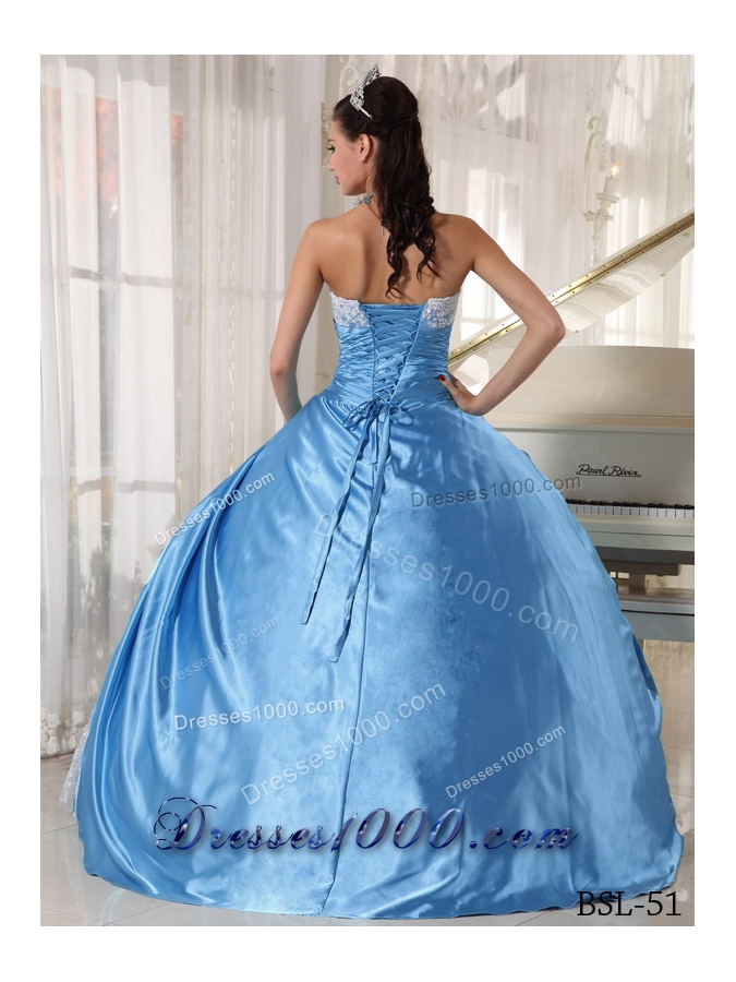 2014 Spring Aqua Blue Ball Gown Strapless Quinceanera Dress with Lace