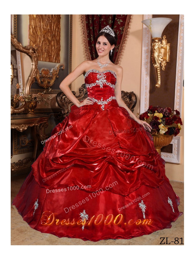 Wine Red Sweetheart Organza Appliques and Pick-ups Sweet Sixteen Dresses