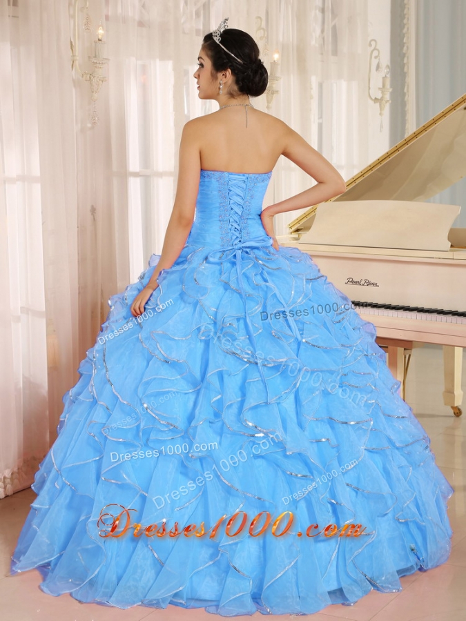 2014 Ruffles and Beaded For Aqua Blue Quinceanera Dress Custom Made