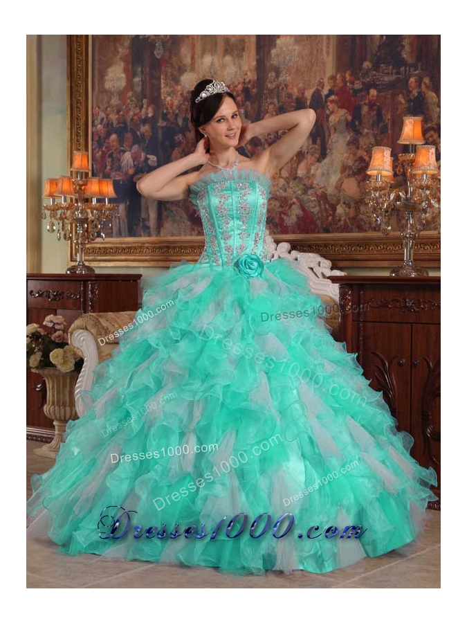 Apple Green Ball Gown Strapless Quinceanera Dress with Appliques Organza