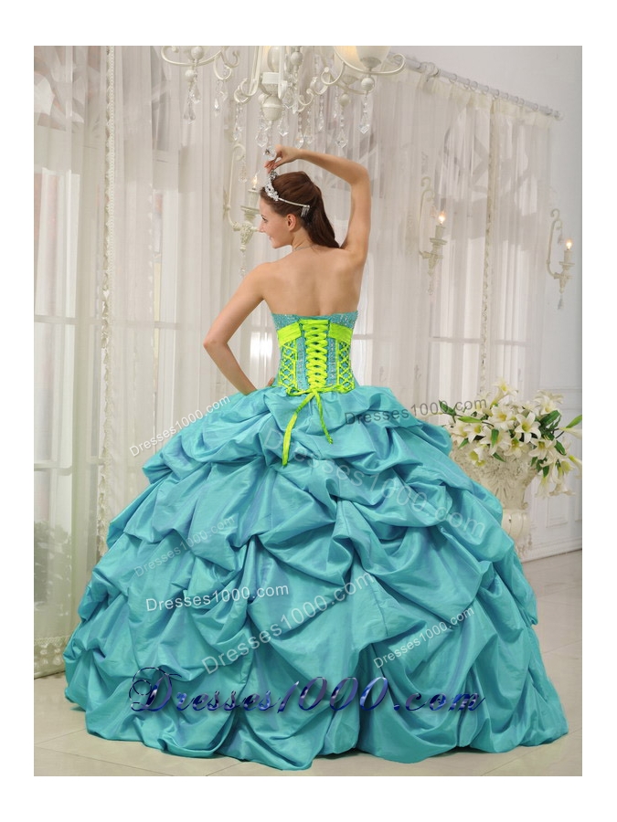 Aqua Blue Ball Gown Sweetheart Quinceanera Dress with Taffeta Beading Pick-ups
