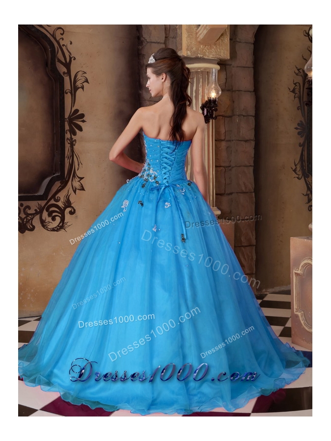Aqua Blue A-line Sweetheart Floor-length Organza Beading Quinceanera Dress