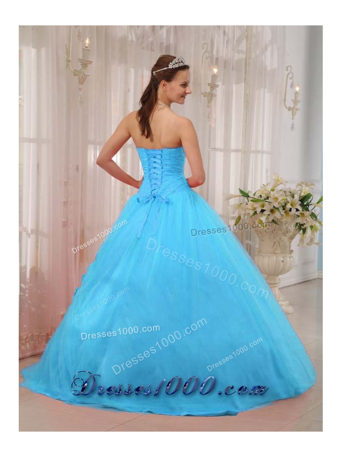 Blue Ball Gown Sweetheart Quinceanera Dress with Tulle Beading