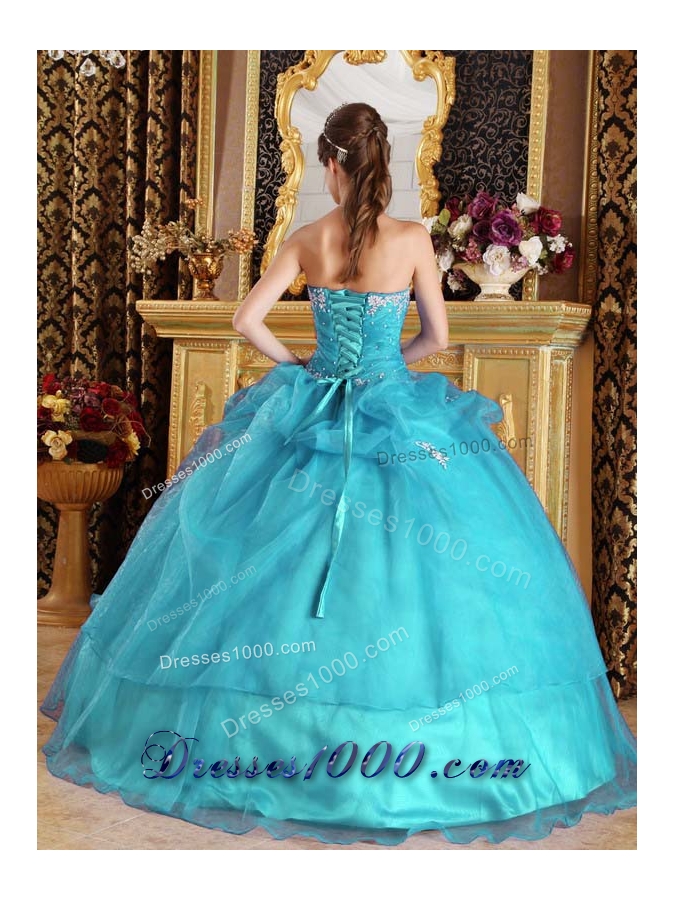 Teal Ball Gown Sweetheart Quinceanera Dress with Organza Appliques
