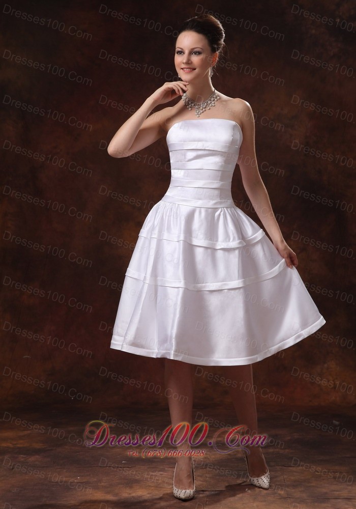 Opulence is the word written all over this dress. This strapless white bridesmaid dress is characterized by layers of belt that adds some details to the dress. The A-line knee-length skirt is easy for your move and makes you a princess. A hidden zipper makes for easy off and on and secures the dress in place. Such high quality in the lowest price, don't hesitate!