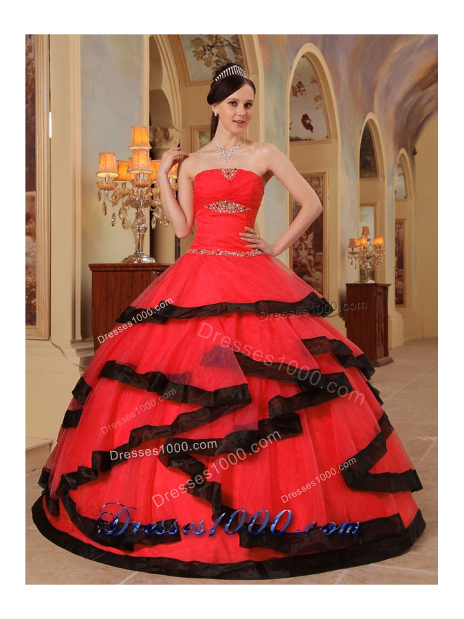 Red Organza Beading Red and Black Dresses For Quinceaneras