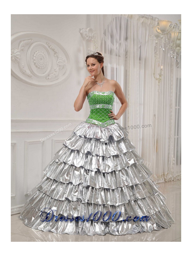 2014 Spring New Style Princess Strapless Beading and Ruffled Layers Quinceanera Dress