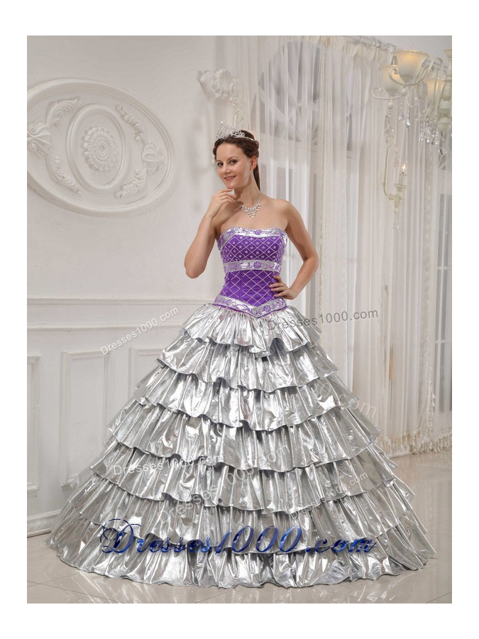 Popular Princess Strapless Beading Quinceanera Dress with Ruffled Layers for 2014
