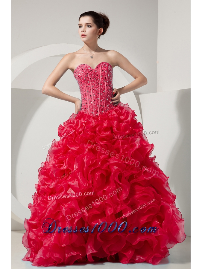 Red Princess Sweetheart Organza Beading and Ruffles Quinceneara Dresses