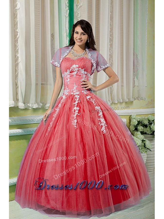 Watermelon Sweetheart Tulle Appliques Quinceneara Dresses On Sale