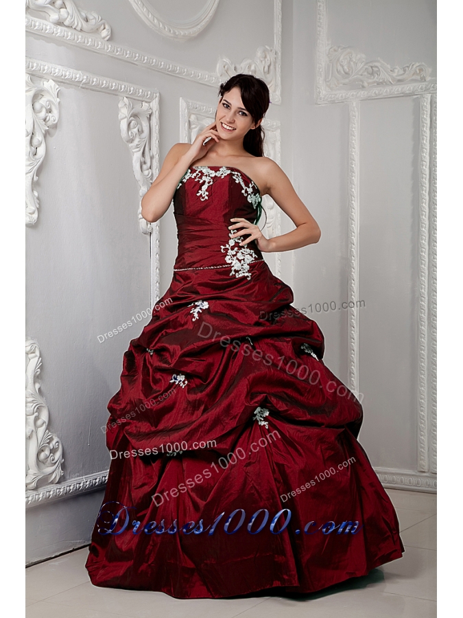 Taffeta Appliques Wine Red Quinceanera Dress with Pick-ups