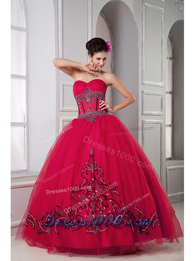 Red Sweetheart Beading and Embroidery Sweet 15 Dresses