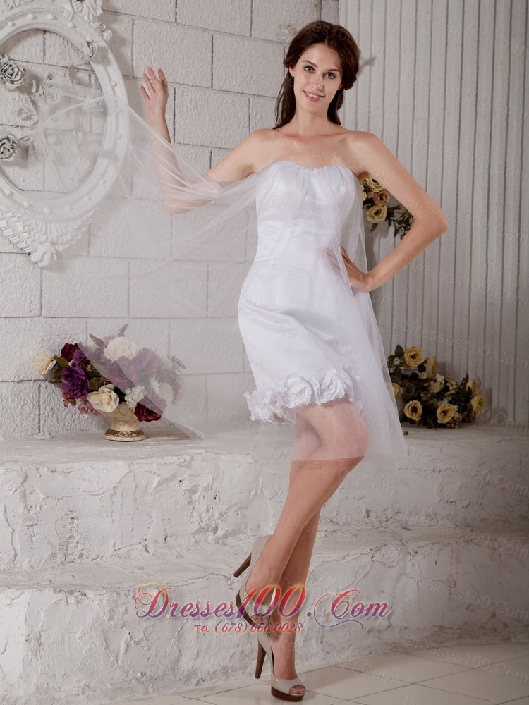Custom Column Strapless Short Wedding Dress Tulle Floral