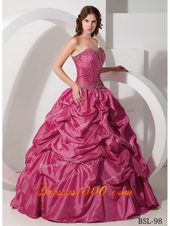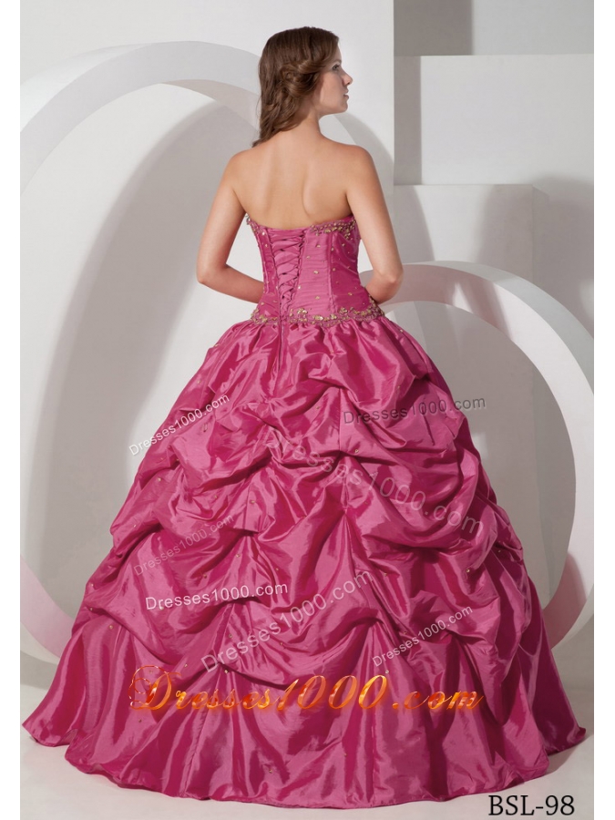 Cheap Hot Pink Ball Gown Strapless Quinceanera Dresses with Pick-ups