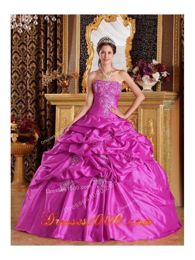 Ball Gown Strapless 2014 Quinceanera Dresses with Appliques