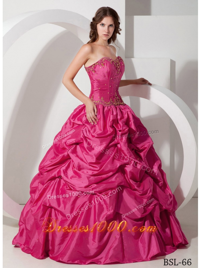 Hot Pink Ball Gown Strapless Quinceanera Dress with Taffeta Pick-ups