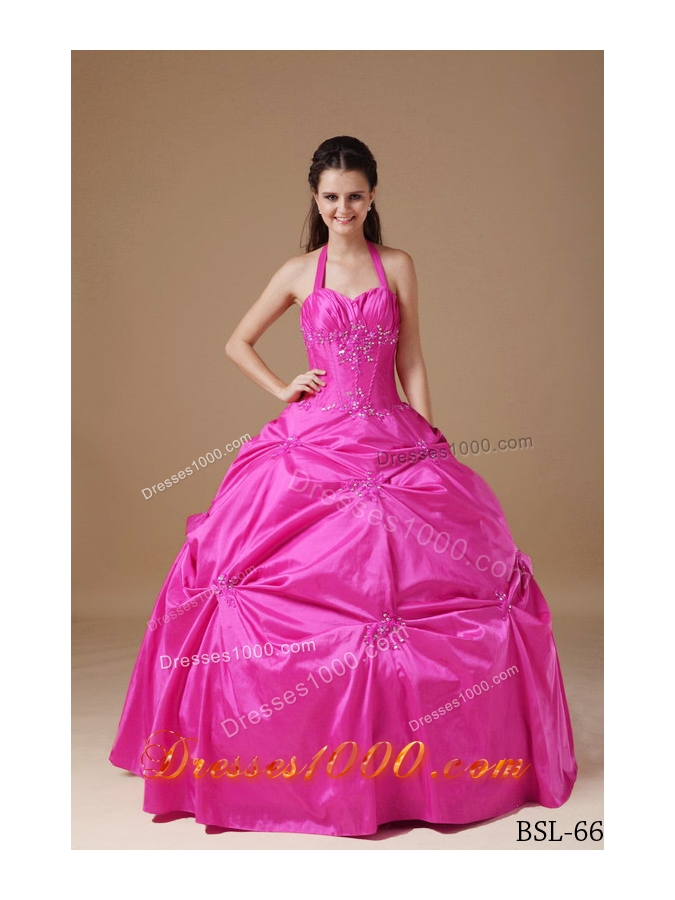 Chic Ball Gown Halter Quinceanera Dress with Taffeta Beading