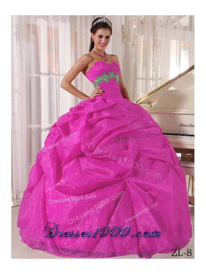 Fuchsia Ball Gown Sweetheart Quinceanera Dress with Organza Appliques