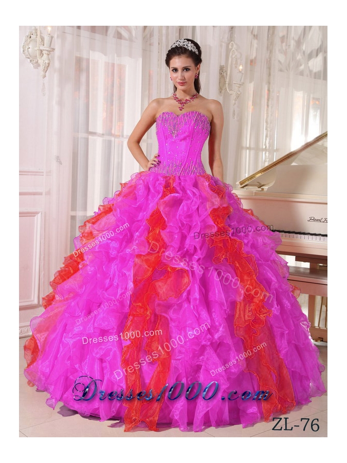 The splendide quinceanera dress features a sweetheart neckline with colorful crystals covered the bustline and waistline, which highlighted your slim figure.Tiers of fullles in contrasting colors makes the skirt stand out.You'er surely be the lightspot at your party in the dress.