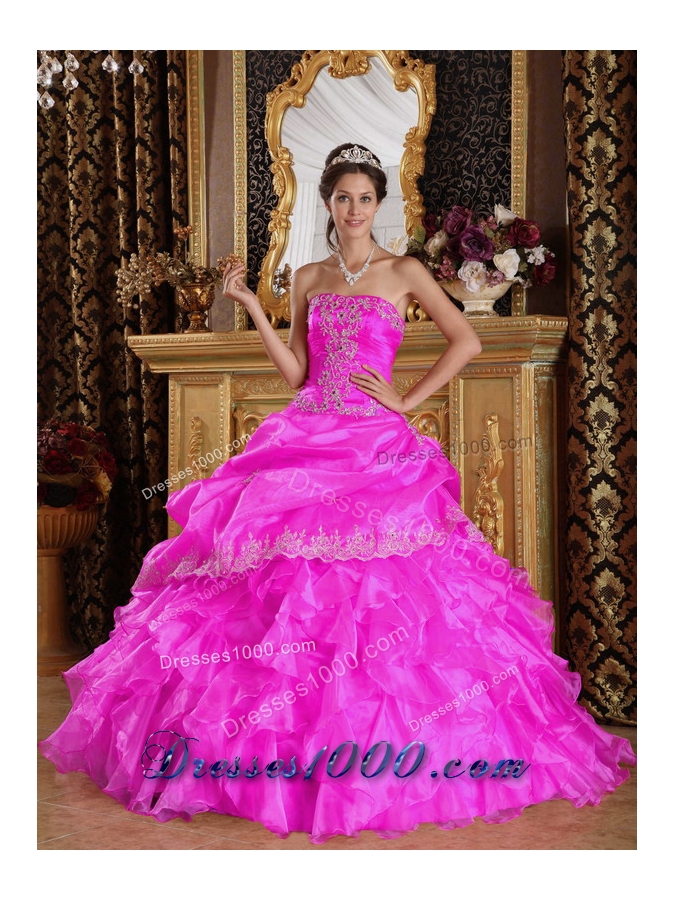 Hot Pink Ball Gown Strapless Quinceanera Dress with Organza