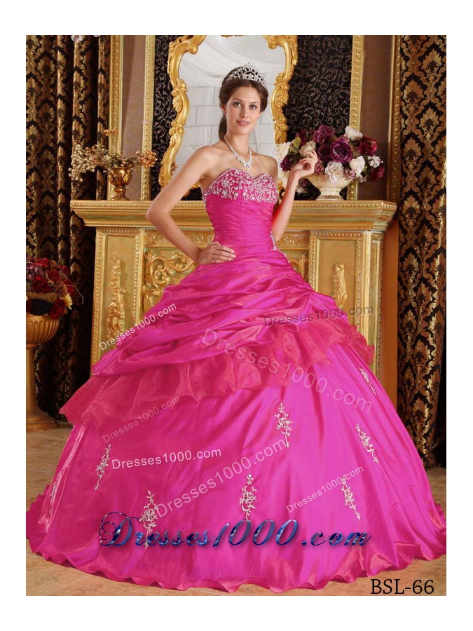 Hot Pink Ball Gown Sweetheart Quinceanera Dress with Taffeta Beading