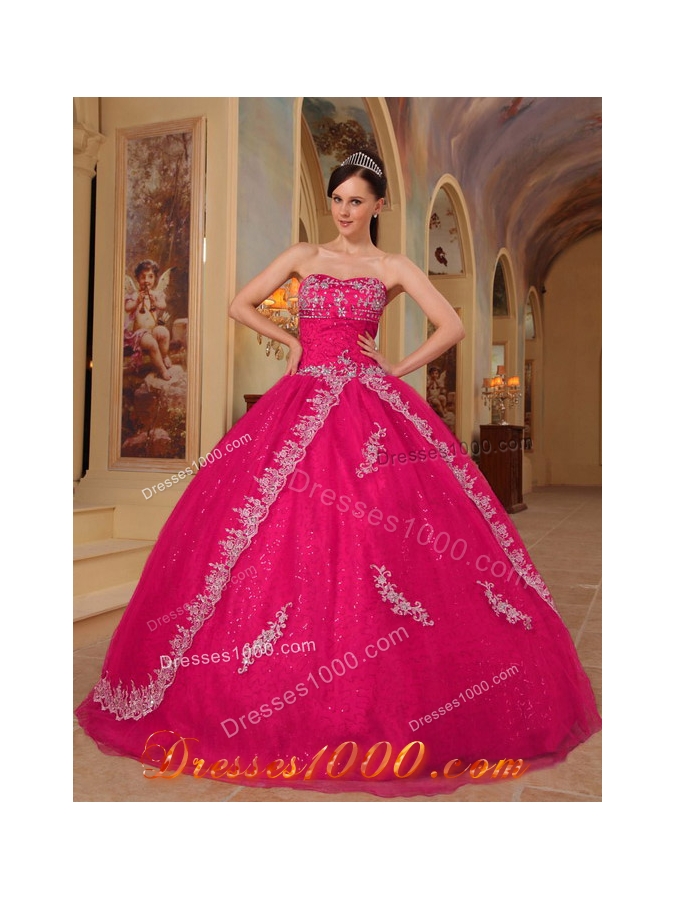 Hot Pink Ball Gown Sweetheart Quinceanera Dress with Organza Embroidery Beading