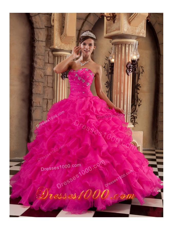 Coral Red Ball Gown Sweetheart Quinceanera Dress with Organza Ruffles