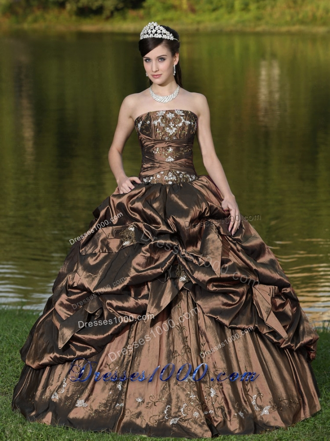 2014 Strapless Quinceanera Dress with Beading and Pick-ups