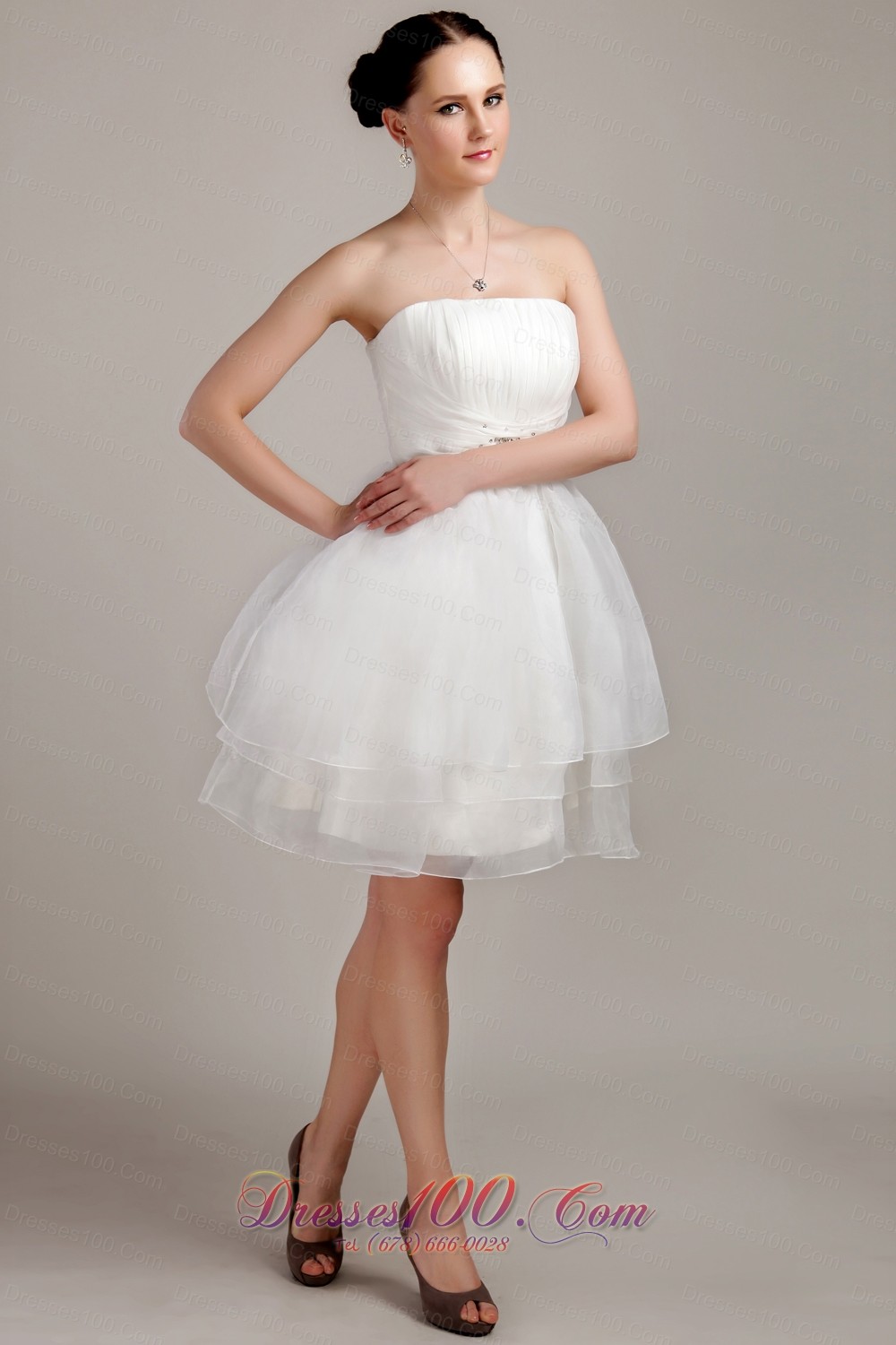 Nifty A-line Mini-length Beading Ruched Wedding Dress