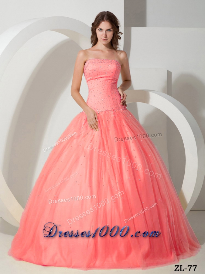 Ball Gown Strapless Tulle Beading Sweet Sixteen Quinceanera Dresses