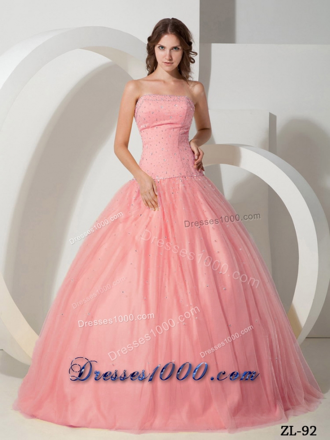 Simple Ball Gown Strapless Tulle Quinceanera Gowns with Beading