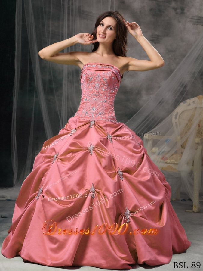 Cheap Strapless Quinceanera Gown Dresses with Appliques and Pick-ups