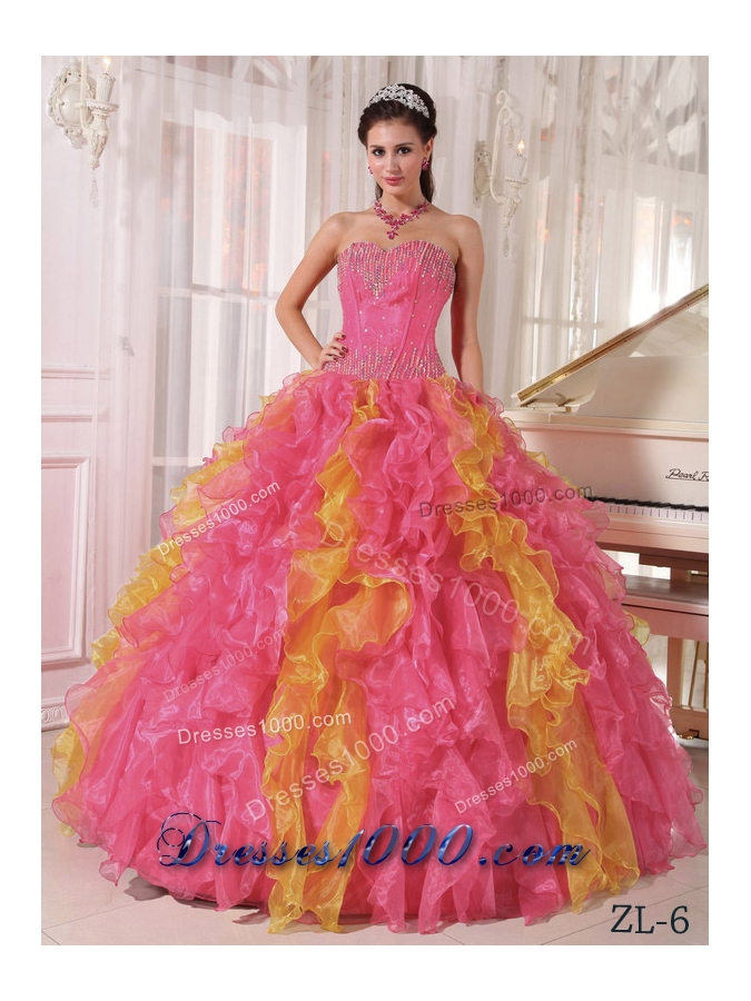 The splendide quinceanera dress features a sweetheart neckline with colorful crystals covered the bustline and waistline, which highlighted your slim figure.Tiers of fullles in contrasting colors makes the skirt stand out.You'er surely be the lightspot at your party in the dress.