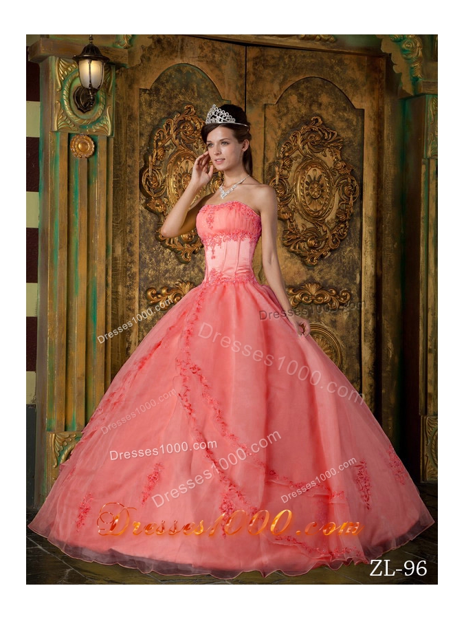 2014 Watermelon Ball Gown Strapless Appliques Dresses Quinceanera
