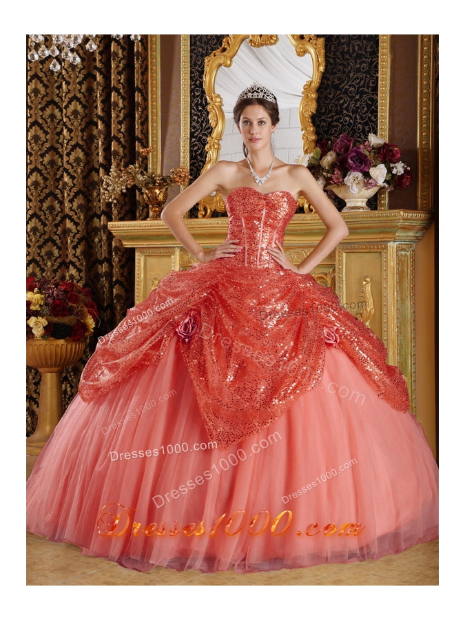 Ball Gown Sweetheart Hand Made Flowers Dress For Quinceanera with Sequined