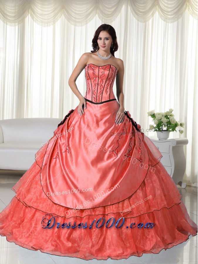 If you're a fan of the fancier, finer things in life this might just be the dress for you. It features a gorgeous strapless bodice with embroidery embellishments, a sweetheart neckline and three hand-made flowers on both side with more shimmery beading in the center of the flower which make the dress more dazzling. Also there are flowers on the back and lace up back finishes the look of this elegant dress.