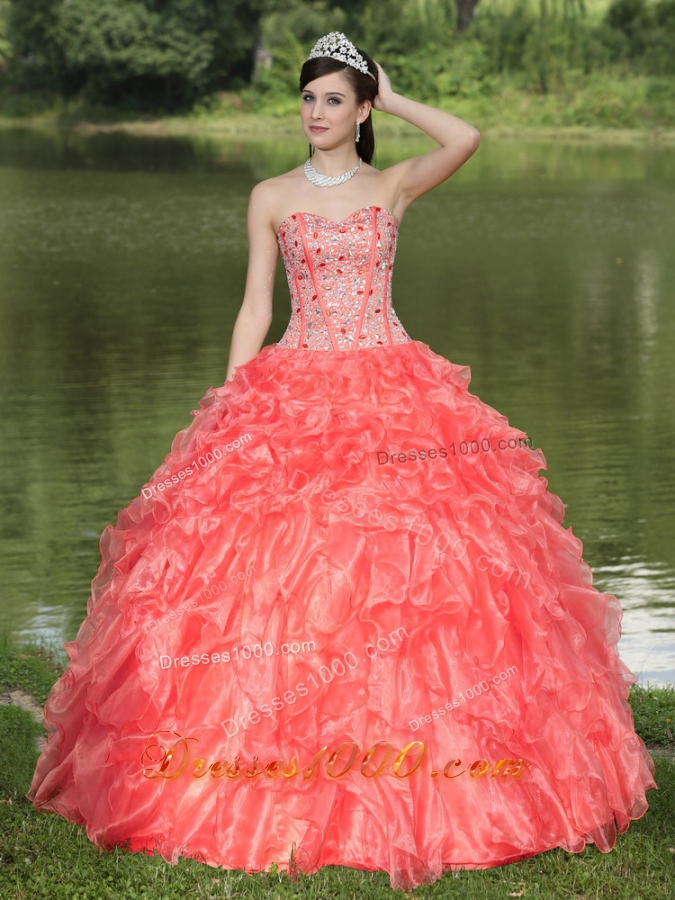 Lovely Sweetheart Beading and Ruffles Quinceanera Dresses with Organza
