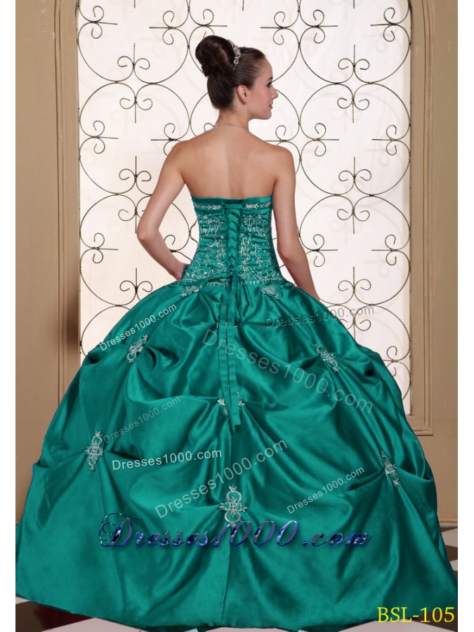 Taffeta Strapless Modest Quinceanera Dresses Gowns with Pick-ups and Embroidery