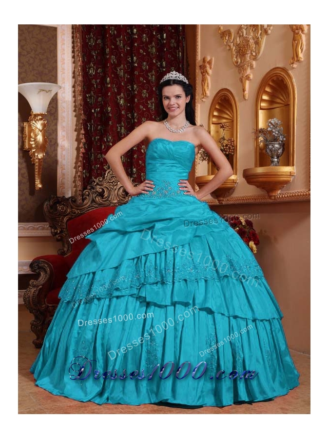 Teal Sweetheart Beading and Appliques Puffy Quinceanera Dresses