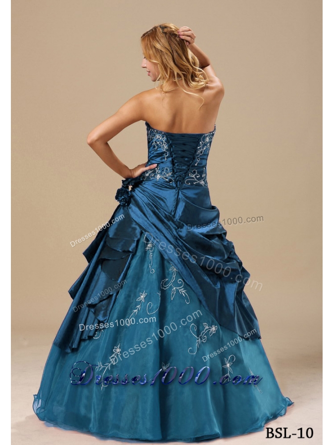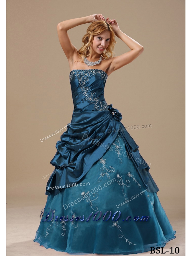 Princess Strapless Embroidery and Hand Made Flowers For Quinceanera Dresses