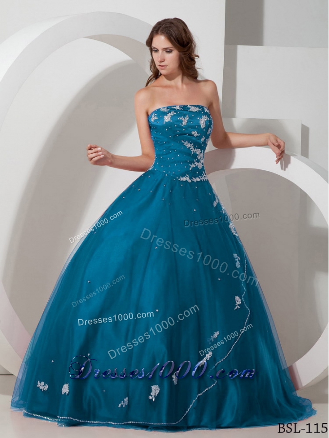 New Style Strapless Long Quinceanera Dresses with Appliques and Beading