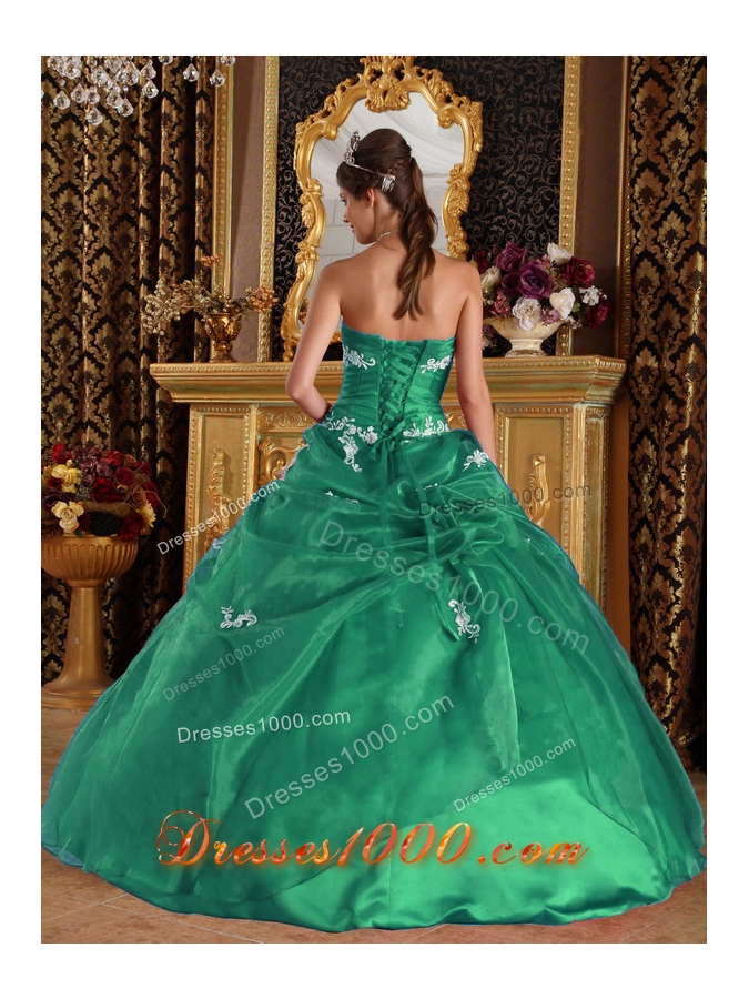 Turquoise Quinceanera Gown Dress with Appliques and Pick-ups