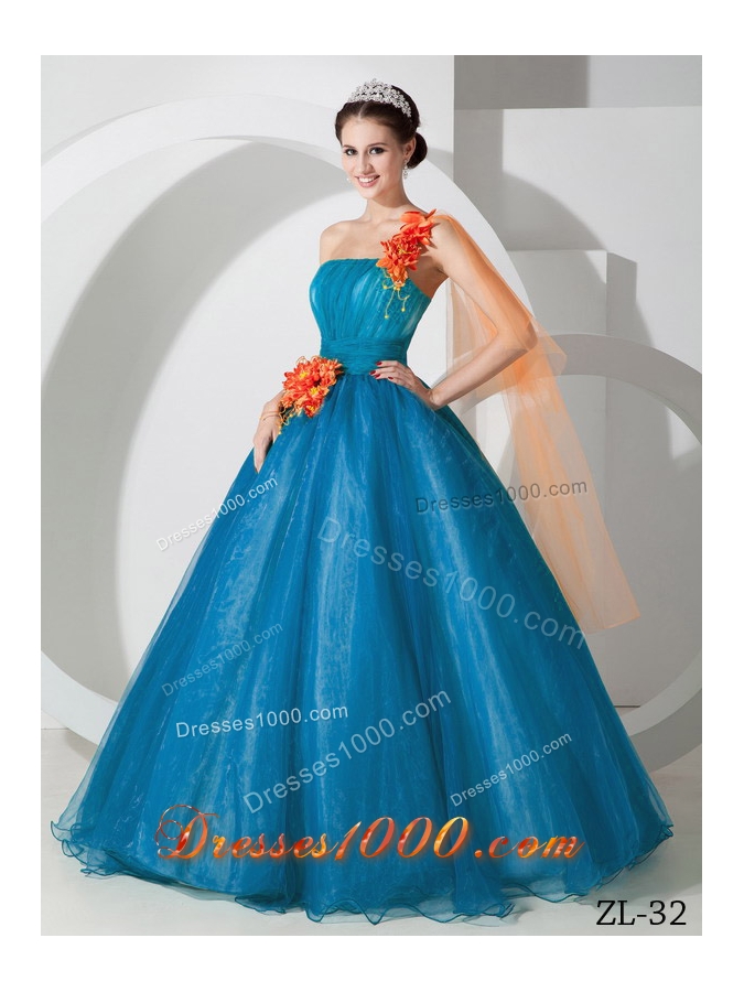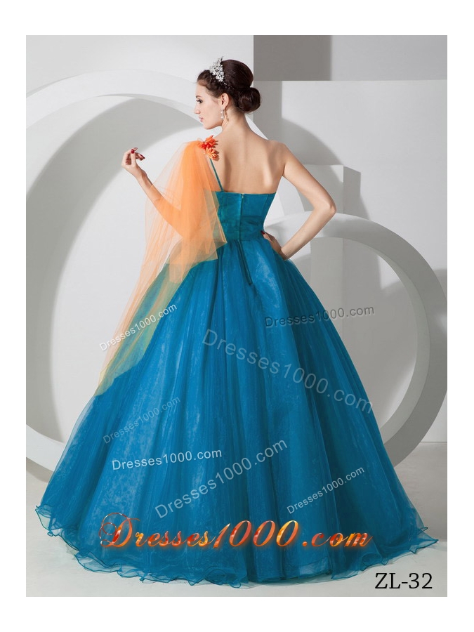 Discount A-line One Shoulder Hand Made Flowers Quinceanera Gowns for 2014
