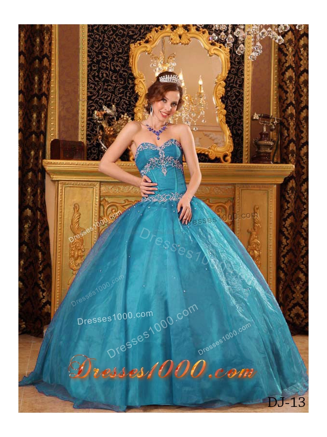2014 Ball Gown Sweetheart Appliques Quinceanera Gowns in Teal