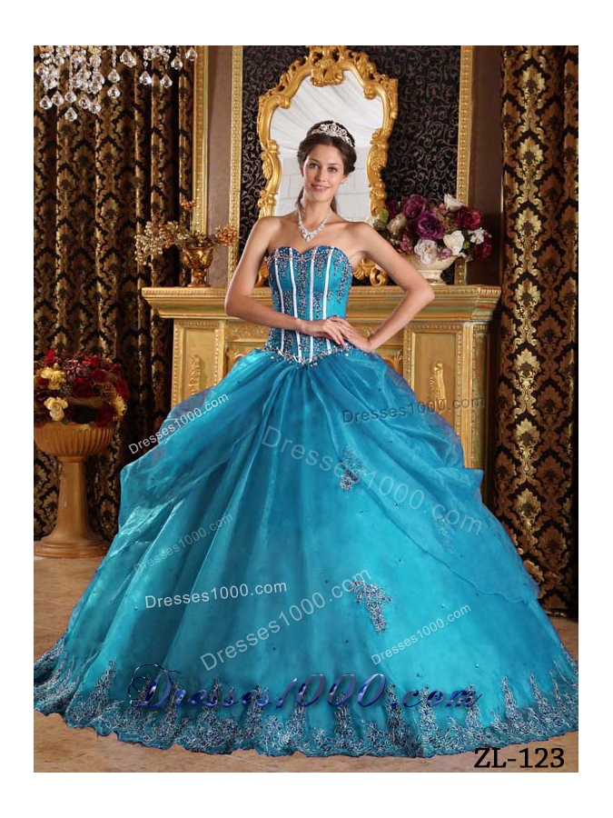 2014 Appliques Organza Sweet 15 Dresses with Sweetheart