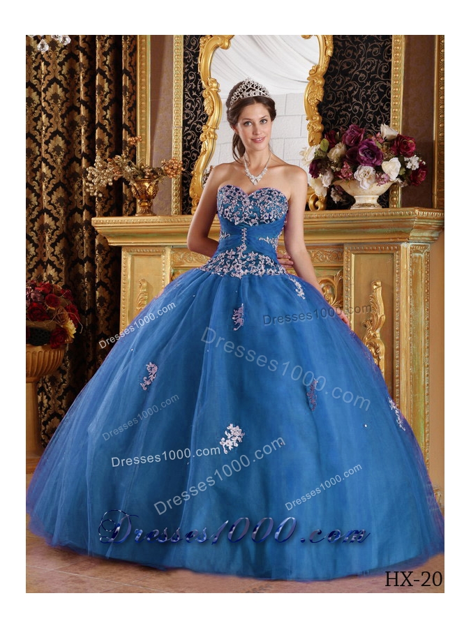 2014 Puffy Sweetheart Appliques Quinceanera Dresses in Teal