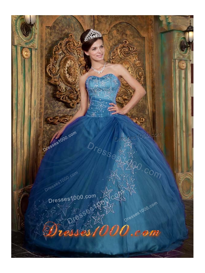Appliques Ball Gown Sweetheart Teal Quinceanera Dresses for Military Ball