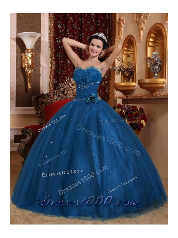 Blue Ball Gown Sweetheart Floor-length Tulle Beading Quinceanera Dress