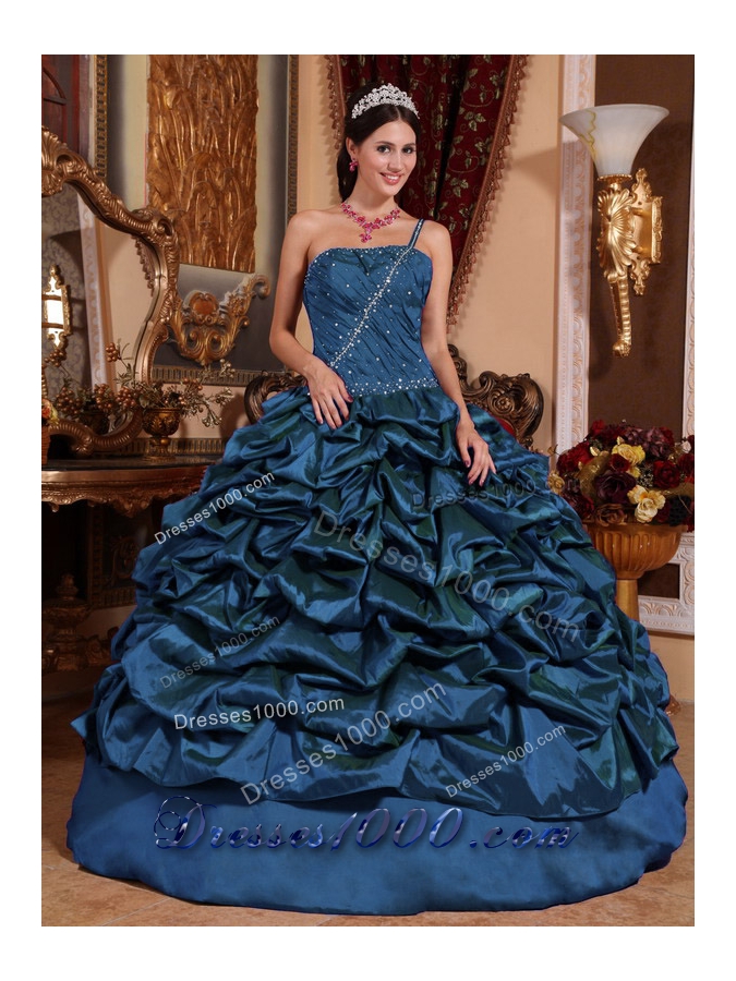 Blue Ball Gown One Shoulder Floor-length Taffeta Pick-ups Quinceanera Dress